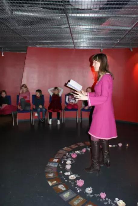 En profesjonell forteller inviterer inn i eventyrets rike. Etterpå tar elevene over og lager sammen med fortelleren sitt eget eventyr som de også lager bilder til. Det hele blir til en flott eventyrbok som kan bli del av skolebibliotekets samling.