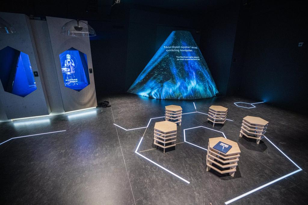 I utstillingen kan man bli til en solvind og få nordlyset til å blafre. Man kan lytte til en symfoni som er både inspirert og laget av lyden av nordlyset eller drømme seg bort i en partikkelstorm.