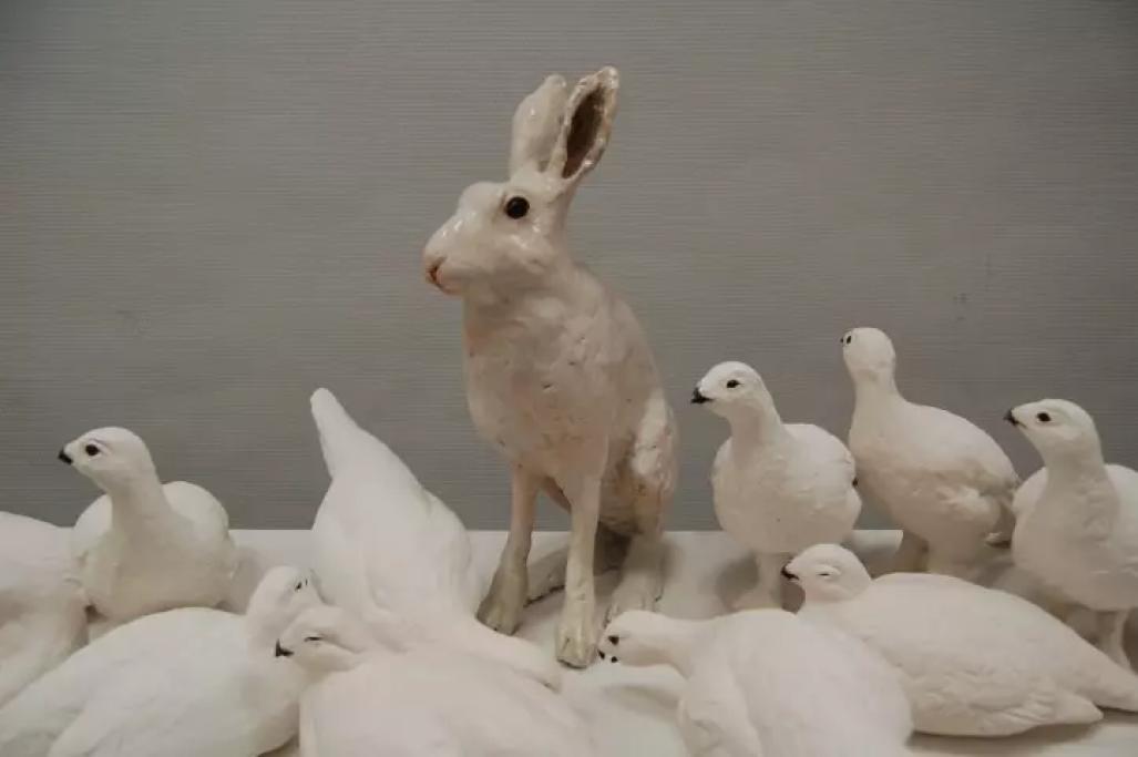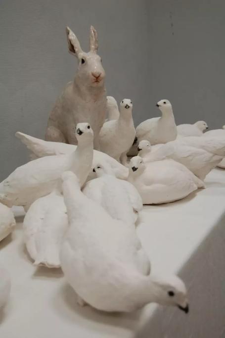 Tilslutt kommer handlingen: Vi skal modellere fugler og dyr i museets verksted, under veiledning av Marit. Materialet vi bruker, er leire i forskjellige farger. Og redskapene er våre egne fantastiske hender, kjøkkenkniver, pinner og fiskesnøre.
