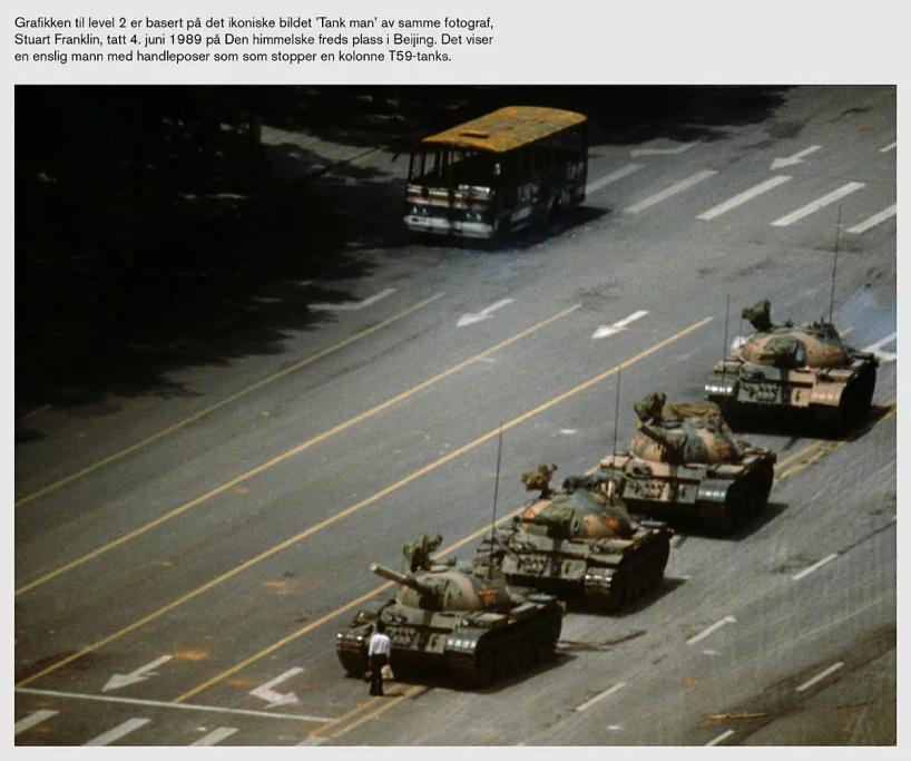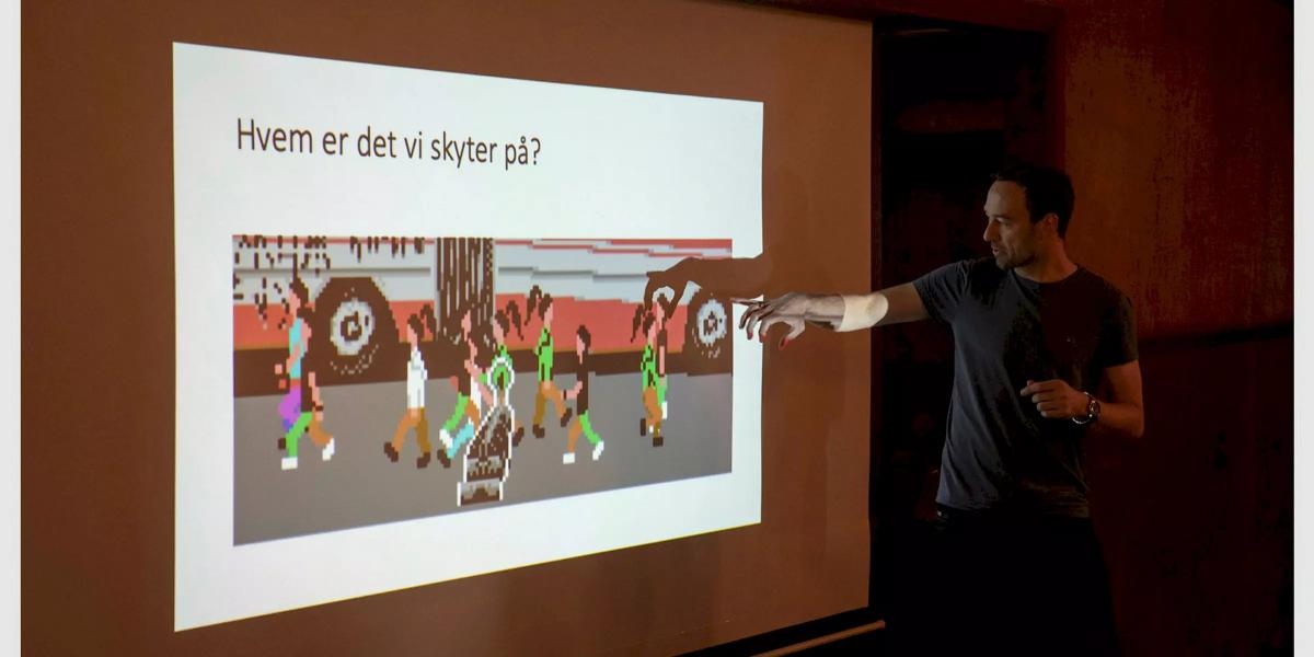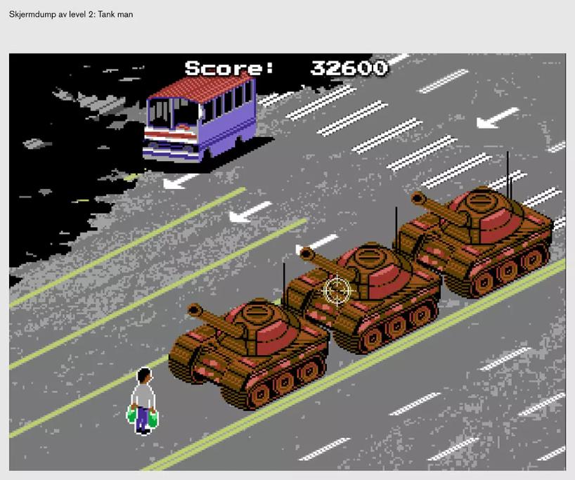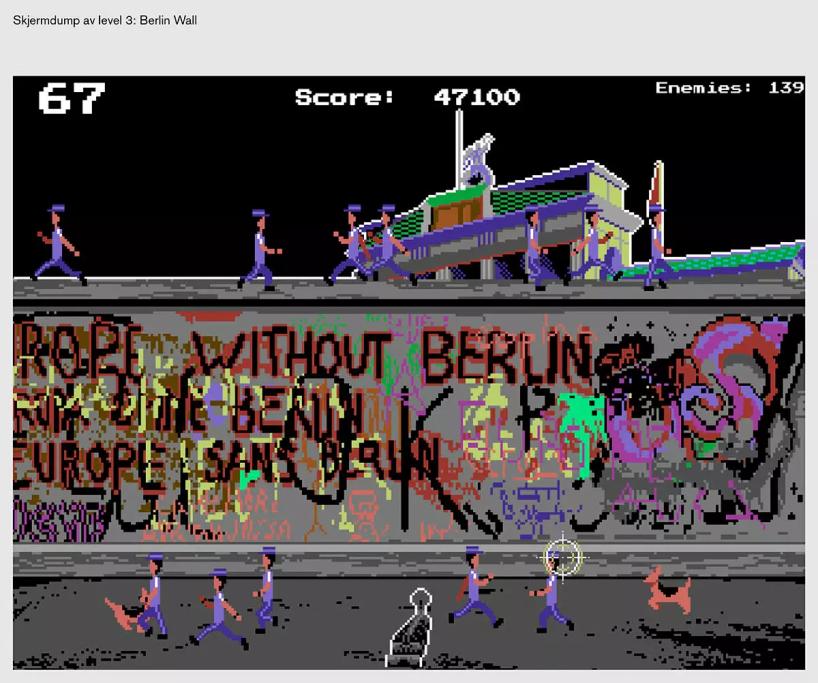 Opplegget i dette kunstbesøket med Terje Abusdal og Jon-Edvard Uleberg, søker å diskutere disse spørsmålene gjennom å la elevene møte medieuttrykk som på ulikt vis tematiserer propagandaens metoder for å skape avhumanisering og hat. Elevene får spille et Commodore 64-aktig skytespill hvor de spiller seg gjennom noen mer eller mindre korrekt gjengitte historiske hendelser fra 1989: Studentopprøret på Den himmelske freds plass, Berlinmurens fall, henrettelsen av ekteparet Ceausescu i Romania.